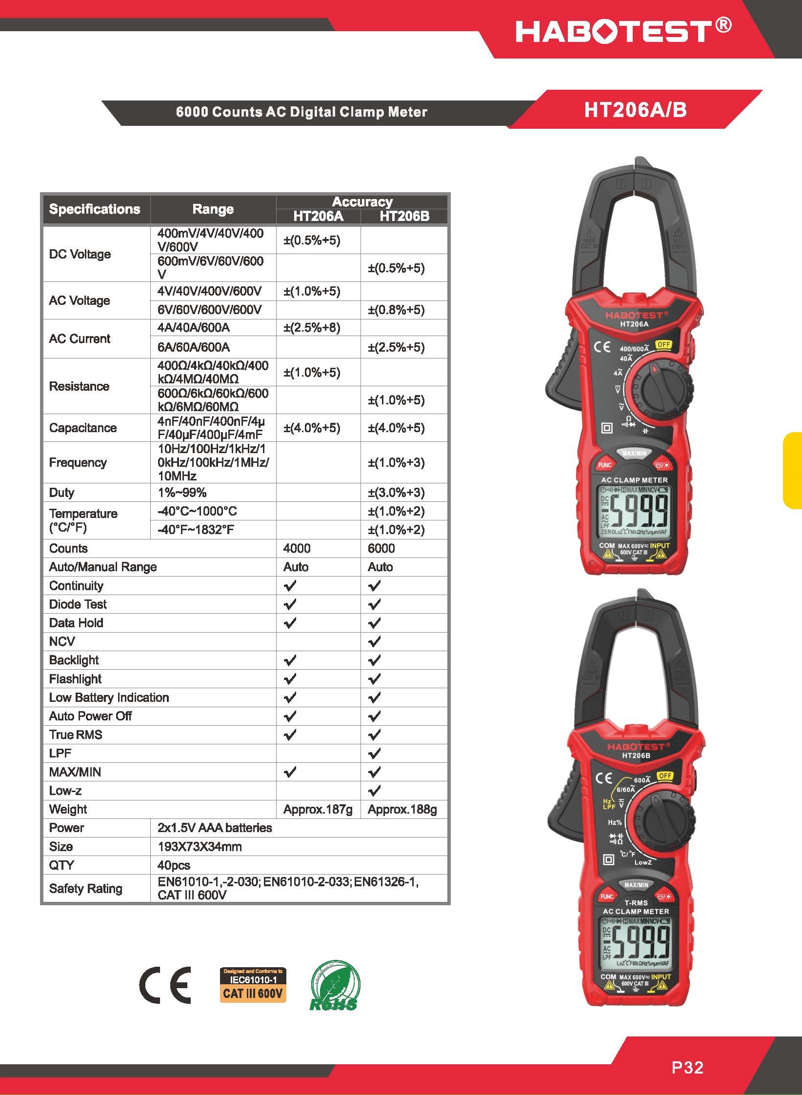 1. แคล้มป์มิเตอร์ HABOTEST รุ่น HT206B จำนวน 1 ตัว